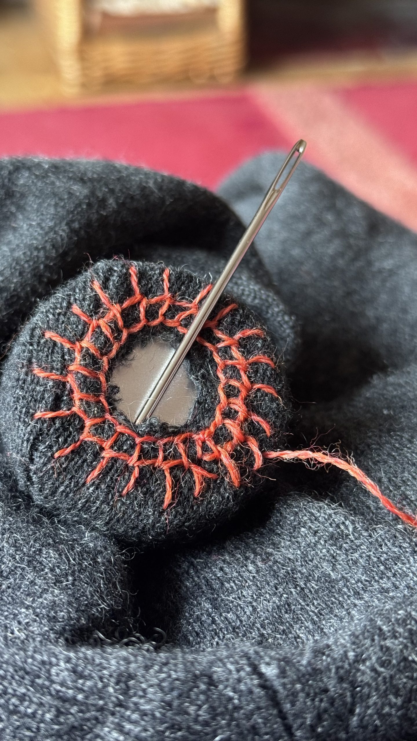 Join us at the No.11 Kitchen, Ham Common, where you will acquire the skill of mending small holes in clothes, using the “firework repair” style, some folks call this ‘Scotch Darning’ or ‘Blanket Stitch’ thrown in for good measure, to transform that hole in the sleeve of your sweater, or the knee of your favourite trousers.