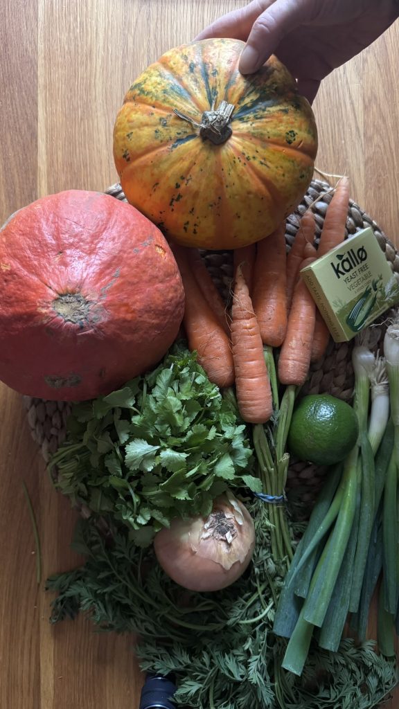 I’m proud to support the fantastic work of Sutton Community Farm, where this lovely recipe comes from: their “Red Kuri Squash Thai Soup” (by Ceri Jones) is a brilliant way to use up pumpkins or squash before they go past their best.